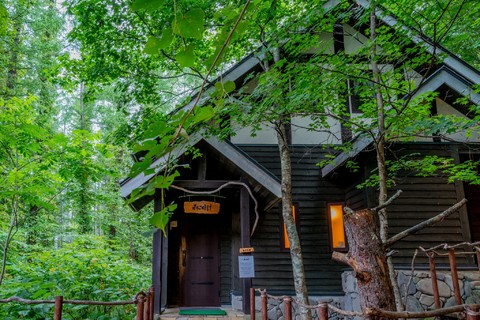 店内有咖啡、瑞士卷、咖喱饭提供。通往咖啡馆的幽径很美,雪境树木独有的清新香甜让人不禁大口吸气。咖啡馆门上挂着清脆的铃铛,一推门,叮铃铃的响声似乎告诉你—“快忘掉进门前的景色,享受另一片不一样的森林时光。”